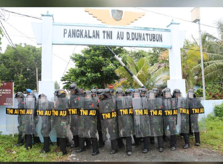 Langgur. Evav-Terkini.com Personel Lanud Dominicus Dumatubun melaksanakan latihan penanggulangan huru-hara (PHH) kesiapan pengamanan pemilihan umum (Pemilu) tahun...
