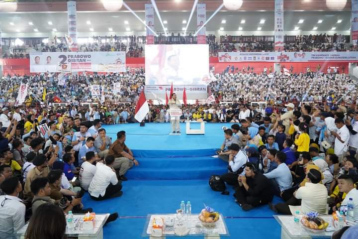 MEDAN. Evav-terkini.com Ribuan pendukung menyambut kedatangan Calon Presiden (Capres) Nomor Urut : 2, Prabowo Subianto, di Gedung...