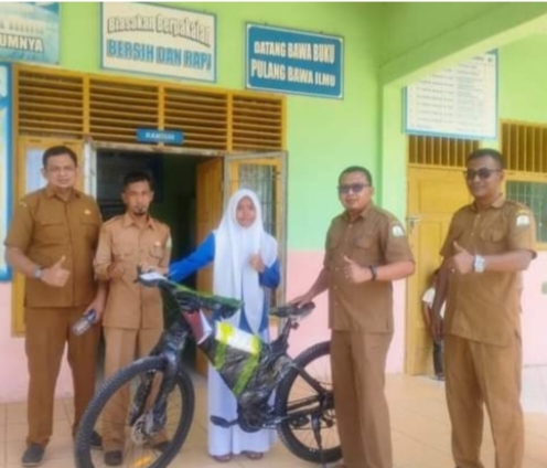 Aceh Timu.- Evav-terkini-Com Salah satu siswi SMK Negeri 1 Julok Kabupatem Aceh Timur menerima satu unit sepeda...