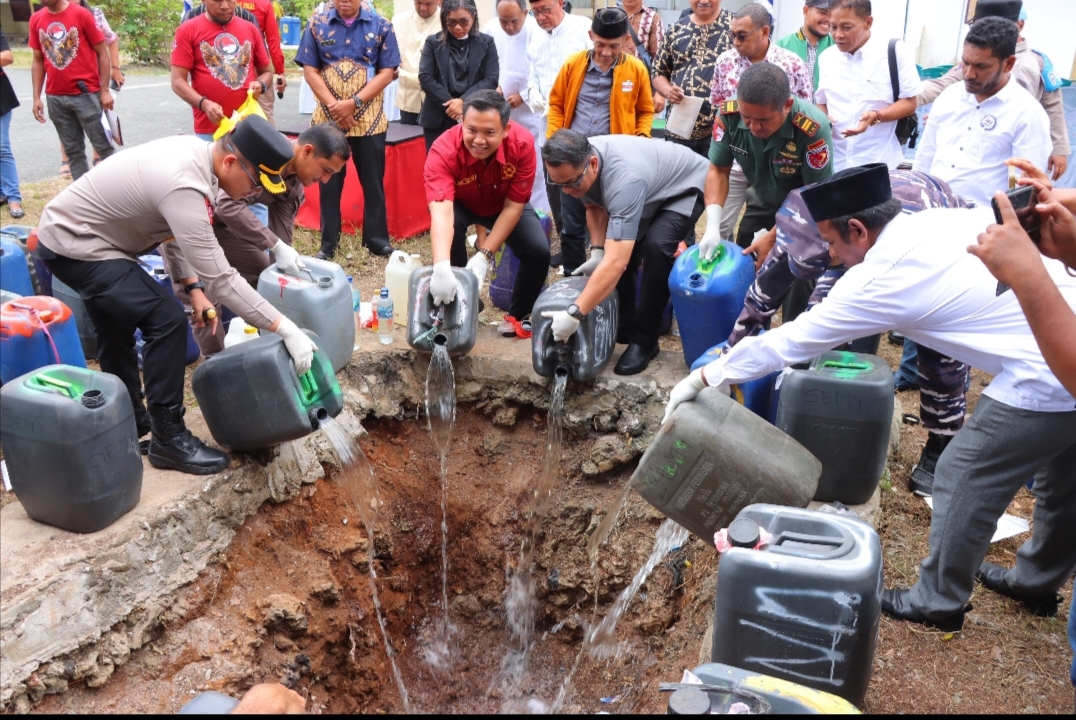 Tual. Evavterkini-Com Kepolisian resort Kota Tual kembali musnahkan minuman keras tradisional jenis sopi sebanyak 3 ton...