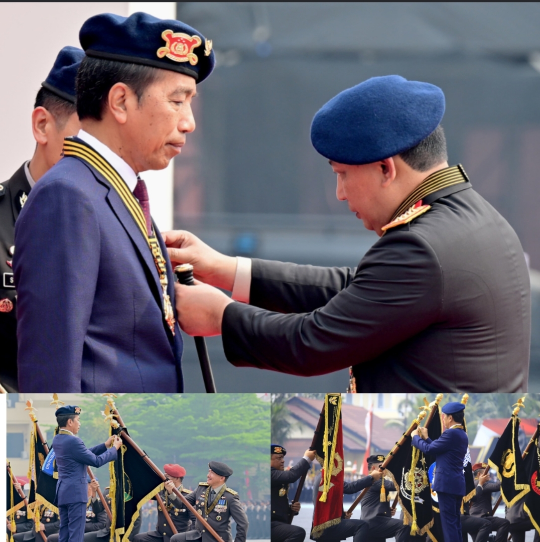 Depok. Presiden Joko Widodo (Jokowi) mendapat anugerah Medali Kehormatan Loka Praja Samrakshana dari Polri. Kapolri Jenderal Listyo...