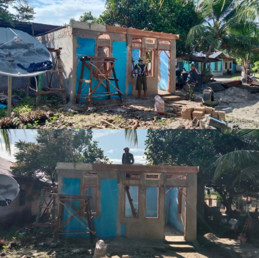 Tual. Anggota satgas TNI Manunggal Membangun Desa (TMMD) ke-122 di wilayah Kodim 1503/Tual bersama masyarakat bergotong royong...