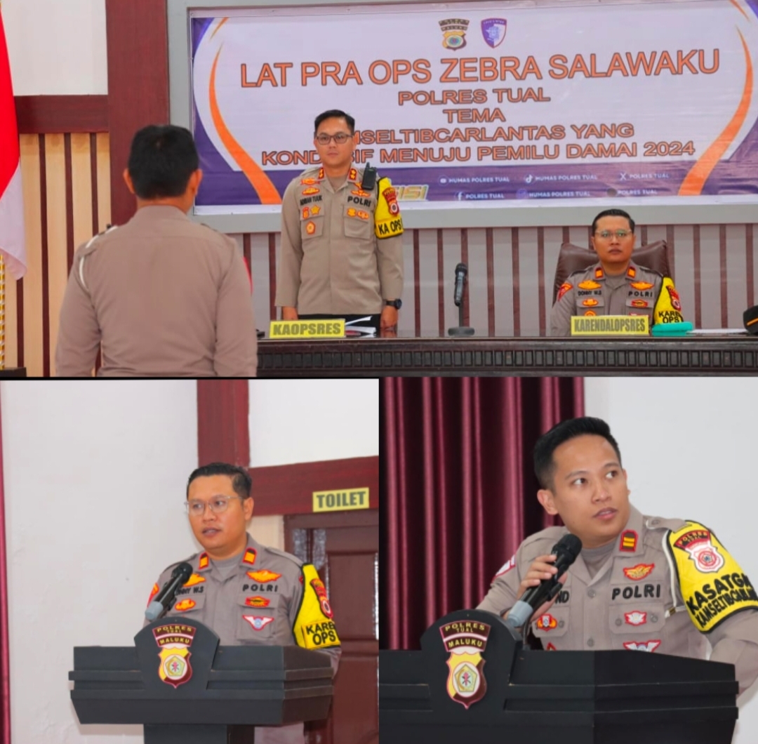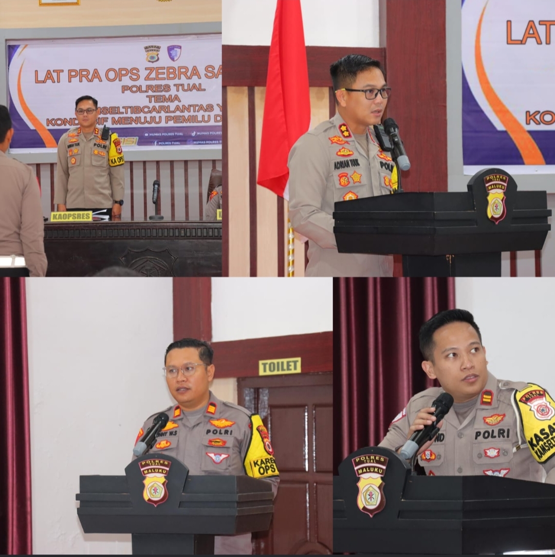 Tual. Polres Tual menggelar Latihan Pra Operasi Zebra Salawaku 2024 di Aula Jana Nuraga, yang dipimpin oleh...