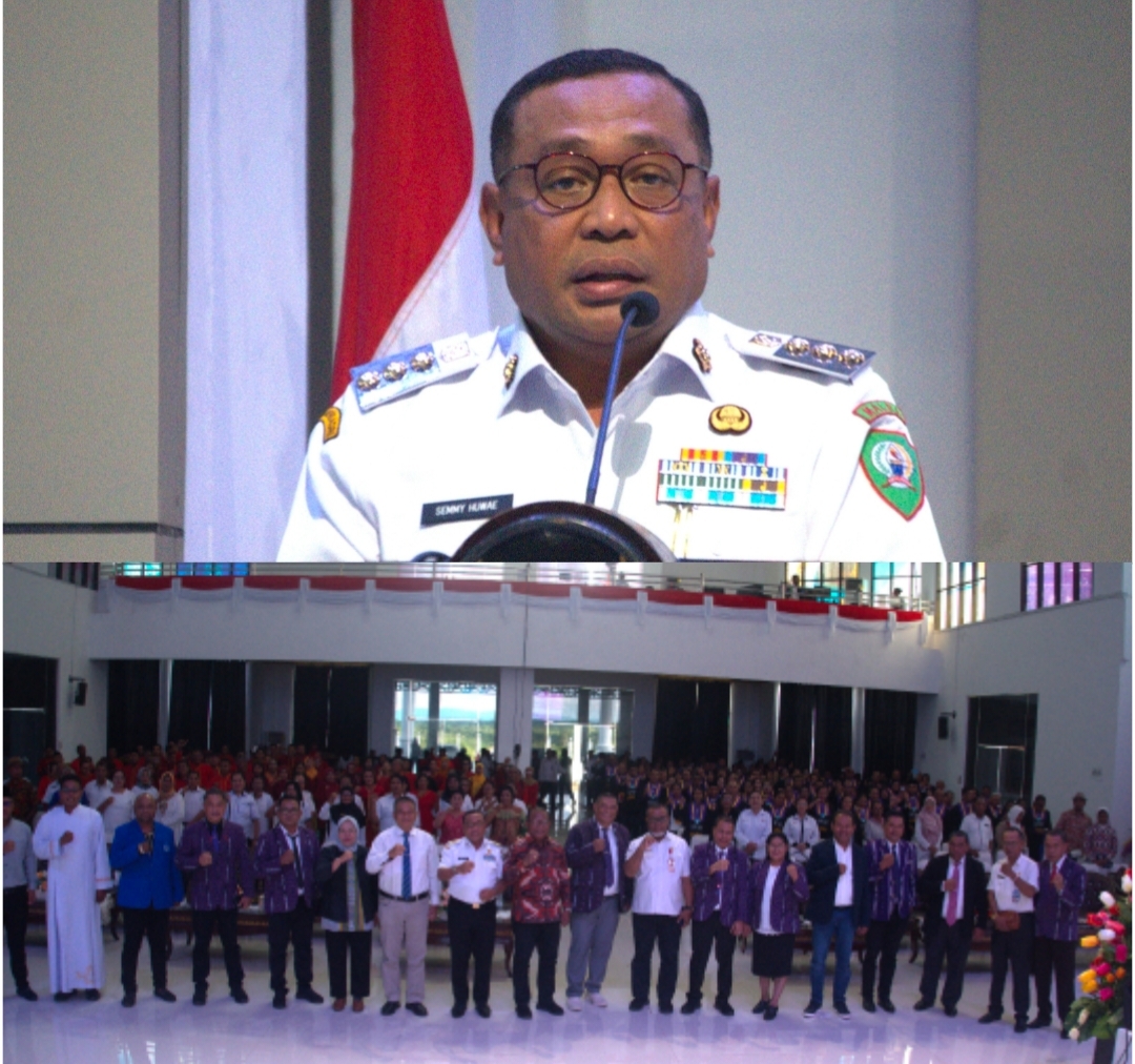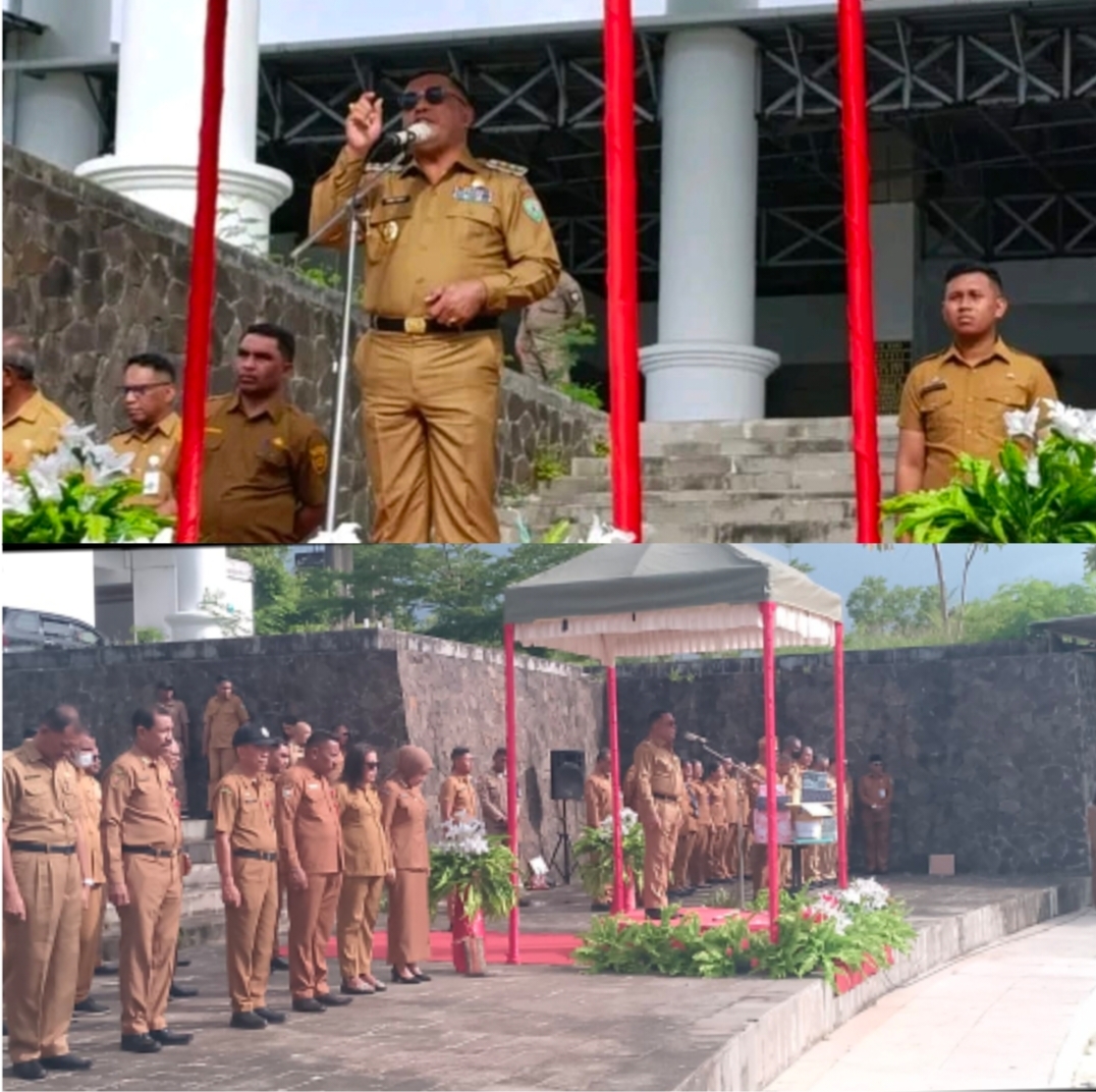 Langgur. Evav-Terkini.com Masuk Perdana Tahun Baru Penjabat Bupati Maluku Tenggara Samuel Huwae memimpin apel perdana awal tahun...