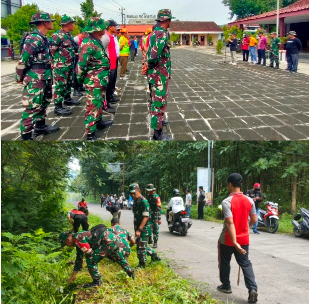 Boyolali. Evav-Terkini.com Personel Koramil 19/Juwangi Kodim 0724/Boyolali bersama Forkopimcam dan Warga masyarakat melaksanakan kegiatan Kerja Bakti massal...