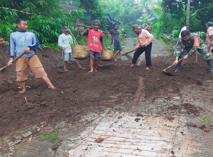 Blitar. Evav-Terkini.com Wujudkan lingkungan yang bersih dan akses jalan kampung yang aman serta nyaman, Babinsa Desa Banjarsari...