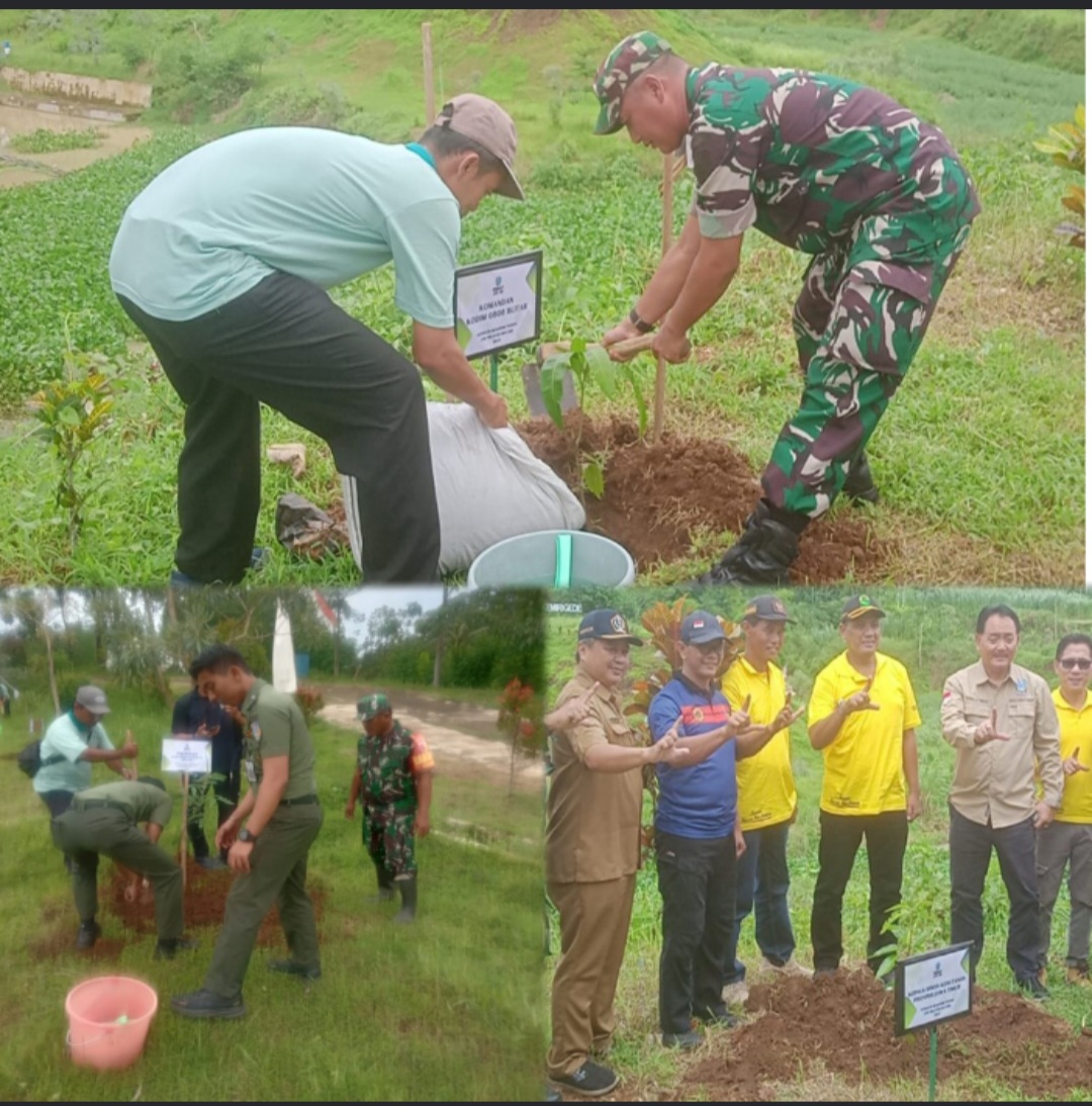 Dalam rangka memperingati Hari Menanam Pohon Indonesia, Bintara Pembina Desa (Babinsa) Kemirigede Koramil 0808/14 Kesamben Kodim 0808/Blitar Serma Imam Muthakalim bersama dinas Kehutanan Provinsi Jatim serta warga setempat melaksanakan aksi penghijauan di sekitar Embung Gogoniti Desa Gemirigeda Kecamatan Kesamben Kab. Blitar. Kegiatan ini bertujuan untuk meningkatkan kesadaran masyarakat akan pentingnya pelestarian lingkungan dan mendukung ketahanan air di kawasan tersebut, Senin (16/12/2024).