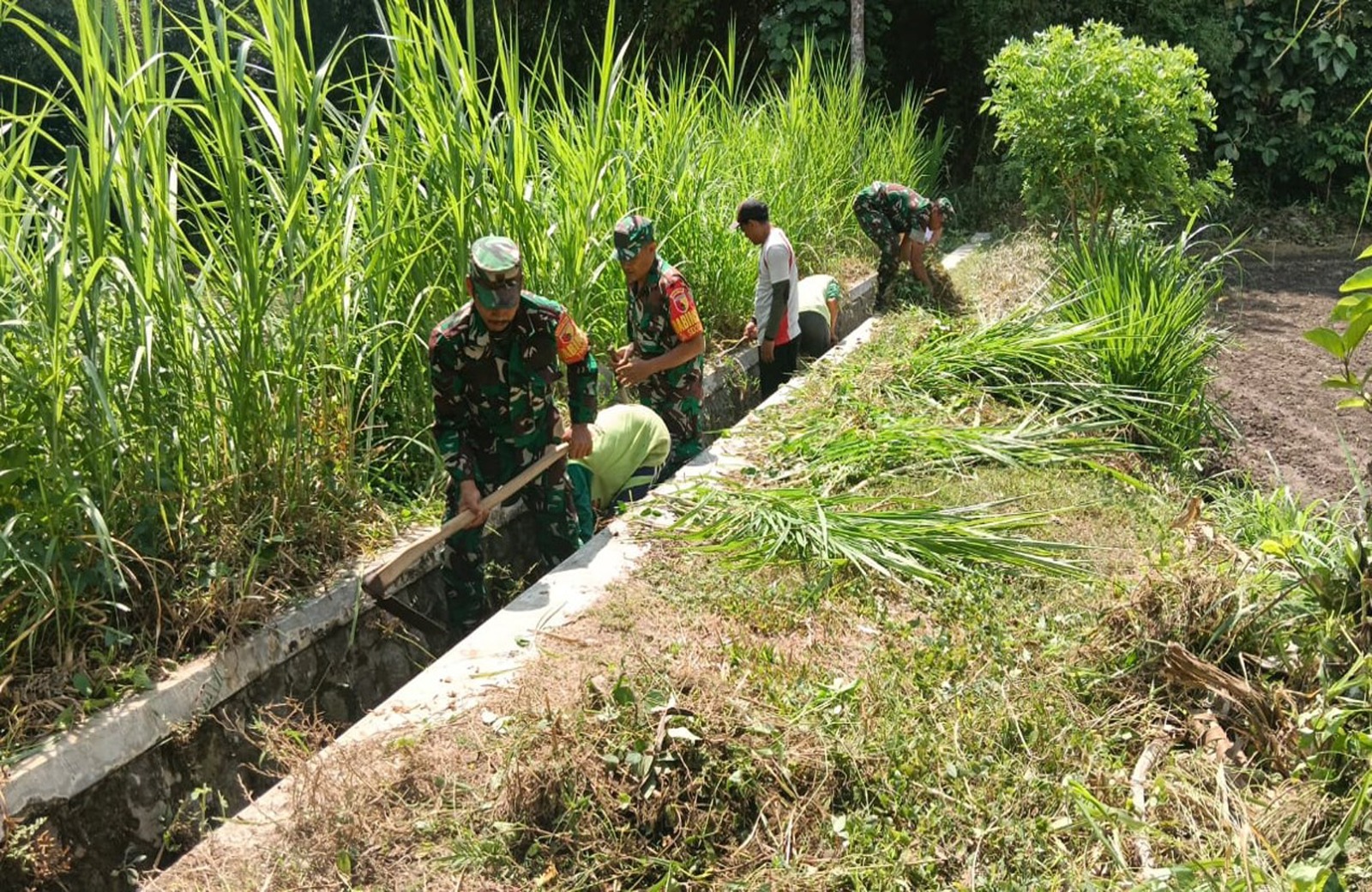 Babinsa Koramil Garum bersama warga setempat, turun langsung kelapangan untuk membersihkan parit yang menjadi saluran air di sekitar Lingkungan Sumberdiren. Mereka membersihkan sampah-sampah yang menyumbat aliran air, membersihkan rumput dan melakukan perawatan agar parit tetap bersih.