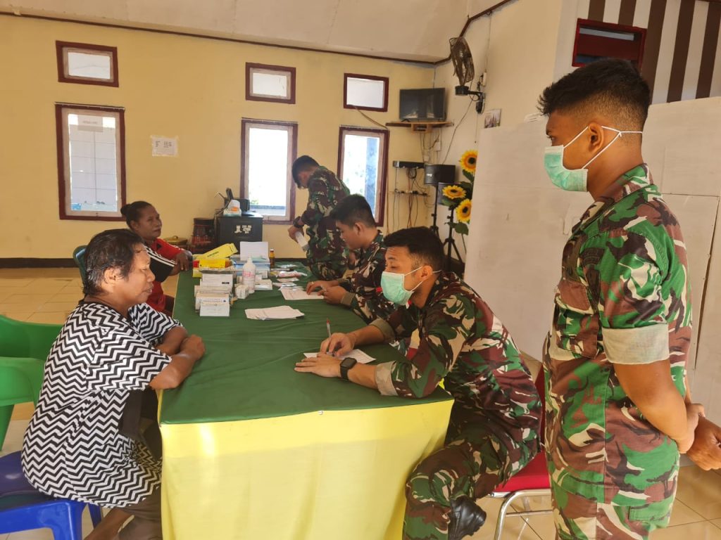Untuk memastikan kondisi kesehatan masyarakat di Ohoi Letvuan Kecamatan Hoat Sorbay Kabupaten Maluku Tenggara dapat terpenuhi dengan baik, Personel Lanud Dominicus Dumatubun memberikan pengobatan dan pelayanan kesehatan di Balai pertemuan Ohoi Letvuan,