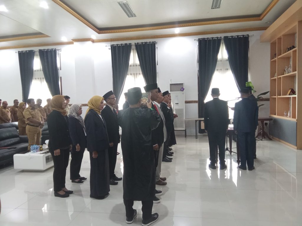Pelantikan yang digelar di ruang kerja Bupati itu berdasarkan dua keputusan resmi yaitu Keputusan Bupati Nomor 821.23/SK/01/2025 dan Nomor 821.24/SK/01/2025 tentang pemberhentian dan pengangkatan pegawai negeri sipil dalam jabatan administrator dan pengawas.