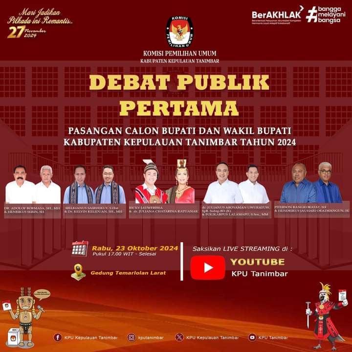 Evavterkini, Saumlaki, Komisi Pemilihan Umum Kabupaten Kepulauan Tanimbar mengajak masyarakat untuk menyaksikan pelaksanaan Debat kedua Pemilihan...