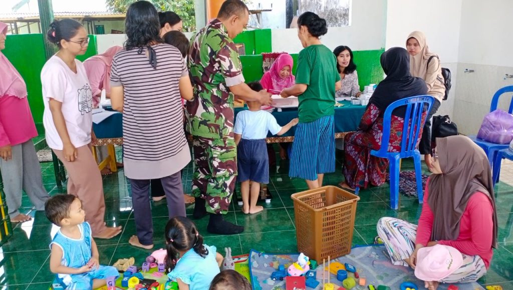 Sebagai wujud kepedulian terhadap kesehatan anak, Serda Supriyono Babinsa Koramil 0808/12 Wlingi, melaksanakan kegiatan pendampingan Posyandu anak guna pencegahan stunting, bertempat di Lingkungan Cepoko RT. 003 RW. 004 Kelurahan Klemunan Kecamatan Wlingi Kabupaten Blitar, Kamis (23/5/2024).