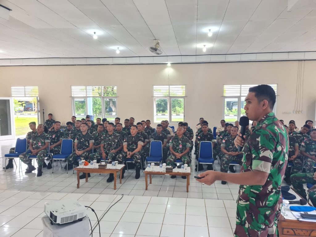 Segenap prajurit Perwira, Bintara, Tamtama dan Pegawai Negeri Sipil (PNS) Lanud Dominicus Dumatubun menerima sosialisasi dari Komandan Satuan Polisi Militer (Dansatpom) Lanud Dominicus Dumatubun Lettu Pom Laccaboer, S.T Han, S.H., tentang Pedoman Penanganan dan Netralitas TNI dalam Pemilu dan Pilkada di Gedung Serbaguna (GSG) Lanud DMN, Senin (21-01-2024).