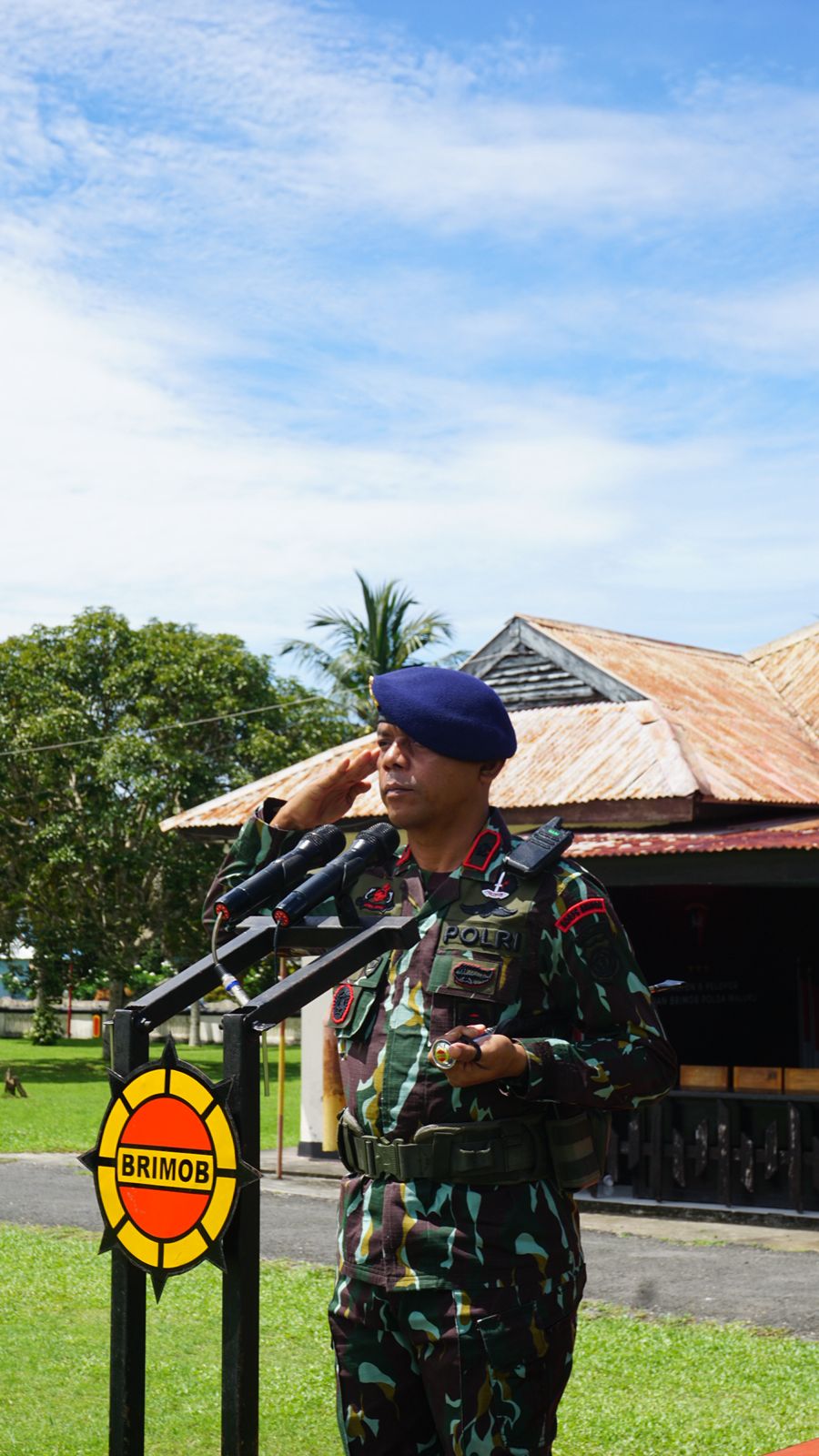 – Selaku Komandan Upacara Danton 2 Kompi 1 Batalyon B Pelopor IPDA PAULUS RIUPASA