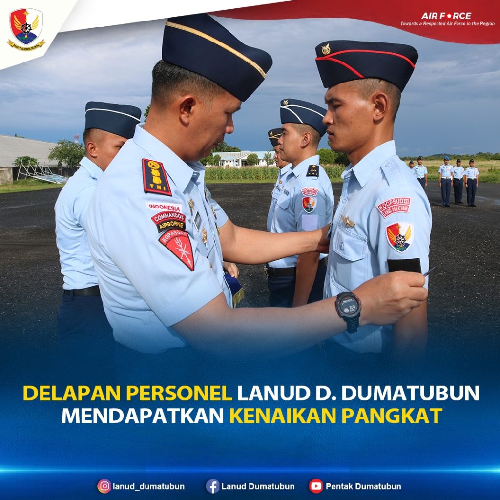 Lebih lanjut, Danlanud menambahkan, kenaikan pangkat menjadi motivasi untuk meningkatkan kinerja yang dilandasi jiwa profesionalisme, militan, dan inovatif, dalam pengabdiannya secara tulus kepada bangsa dan negara melalui TNI AU.