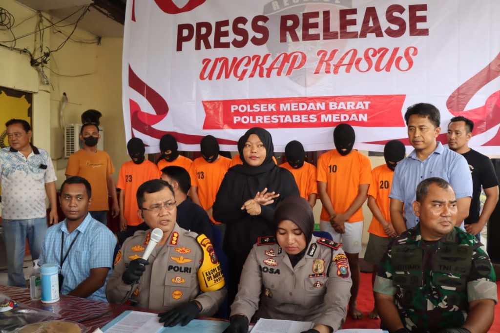 “Setelah kejadian itu korban membuat laporan ke Polsek Medan Barat. Petugas yang menerima laporan korban kemudian menindak lanjuti dengan mengumpulkan keterangan dari korban dan saksi. Dari hasil penyelidikan, petugas mendapat informasi bahwa para pelaku sedang berkumpul di Hotel Labana Jalan Abdullah Lubis, Kecamatan Medan Baru,” ungkapnya.
