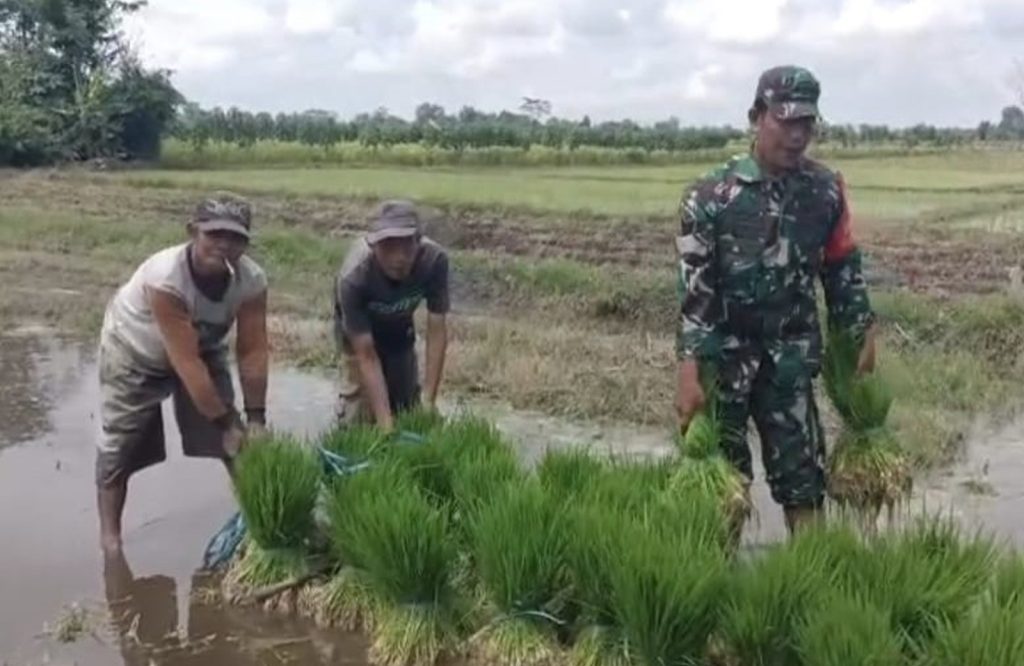 Dalam upaya mendukung ketahanan pangan dan meningkatkan produktivitas pertanian terutama padi, Babinsa Desa Sumbersari Koramil 0808/08 Udanawu Kodim 0808/Blitar Serka Agus Supriyono, turun langsung ke sawah mendampingi petani dalam kegiatan tanam padi. Pendampingan ini dilakukan di lahan milik Bapak Santoso anggota Kelompok Tani (Poktan) Mugi Subur yang berlokasi di persawahan RT. 3 RW. 5, Desa Sumbersari Kecamatan Udanawu Kabupaten Blitar, Senin (9/6/2025).