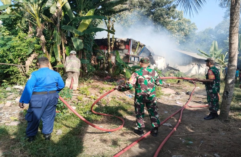 Gerak cepat dan solid ditunjukkan oleh Tiga Pilar Kelurahan Garum bersama warga saat membantu memadamkan kebakaran rumah milik warga di Lingkungan Kebonsari Kelurahan Garum Kecamatan Garum Kabupaten Blitar, pada Selasa pagi (08/07/2025). Kebakaran terjadi pada rumah semi permanen milik Bapak Taufikurrahman (52), seorang pencari barang bekas (rosok), yang berukuran sekitar 4×6 meter.
