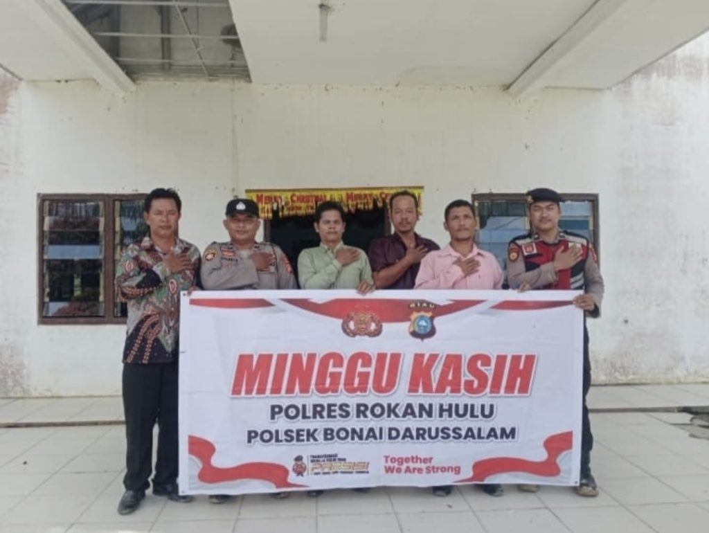 Giat Patroli di Tempat Ibadah Gereja Di Wilayah Hukum (Wilkum) Polsek Bonai Darussalam Polres Rokan Hulu (Rohul) dalam program Minggu Kasih Quick Wins Presisi Polri (MK-QWPP).