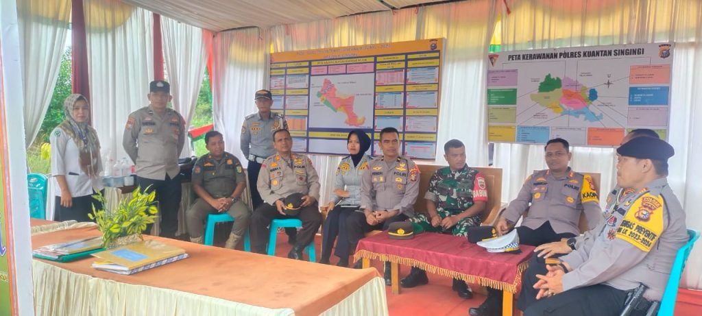 Kegiatan dimulai dengan kedatangan Kapolres dan rombongan di Pos Pengamanan Lebaran 2024 Desa Kasang, Kecamatan Kuantan Mudik, pada pukul 10.00 WIB.