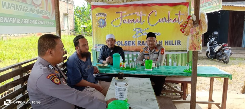 Pada kegiatan Jum’at curhat tersebut hadir, Kapolsek Rambah Hilir Ipda Jonnes, Kanit Binmas, Bripka Herizal, Bamin Sium, Brigadir Indra Tritama Putra, dan tokoh serta pemuda masyarakat Desa Rambah, Kecamatan Rambah Hilir