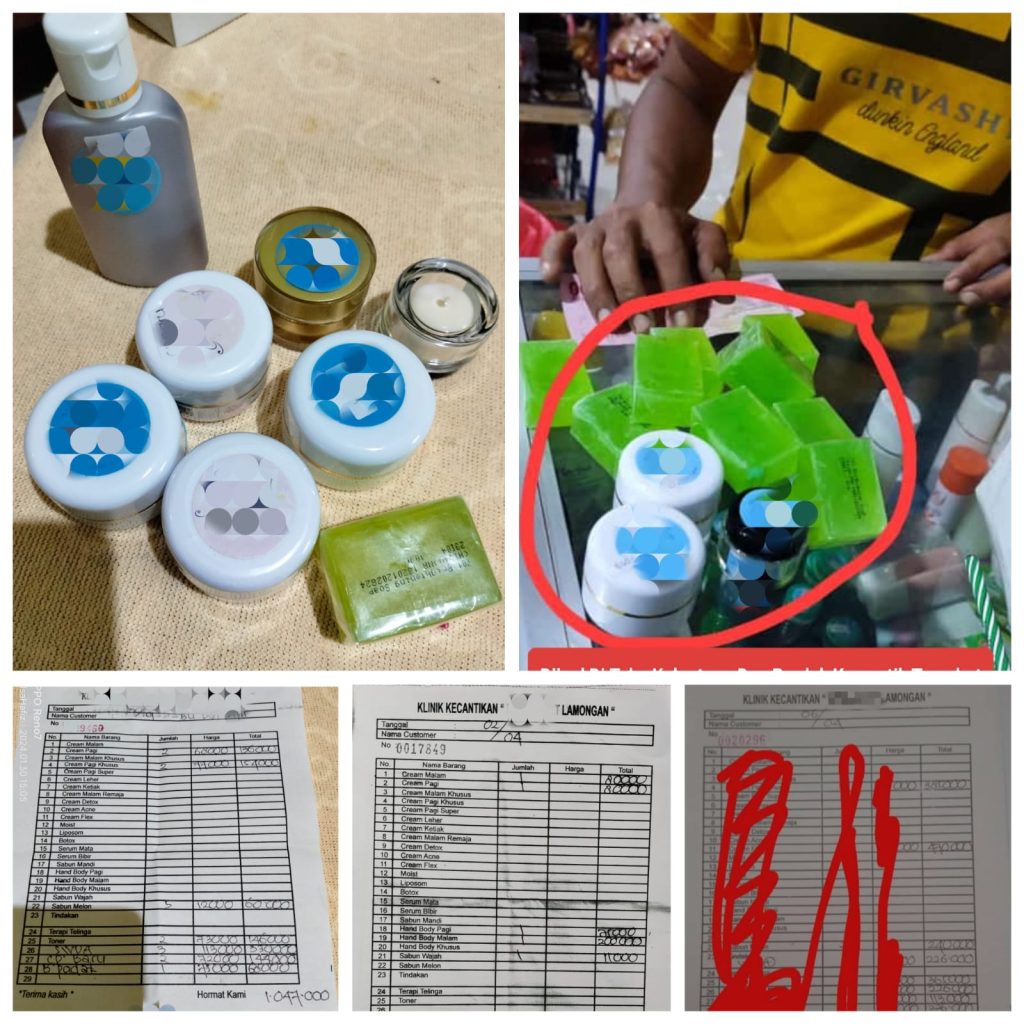 Kosmetik tersebut dijual dan diedarkan oleh salah satu klinik kecantikan yang berada di Lamongan kota, dan nama inisial klinik kecantikan tersebut MS. Berdasarkan temuan tersebut kami melakukan investigasi mendalam dengan terjun langsung untuk membeli produk kosmetik tersebut disalah satu cabang klinik kecantikan MS yang berada di jl. Sunan Giri Lamongan, pada tanggal 2 April 2024..
