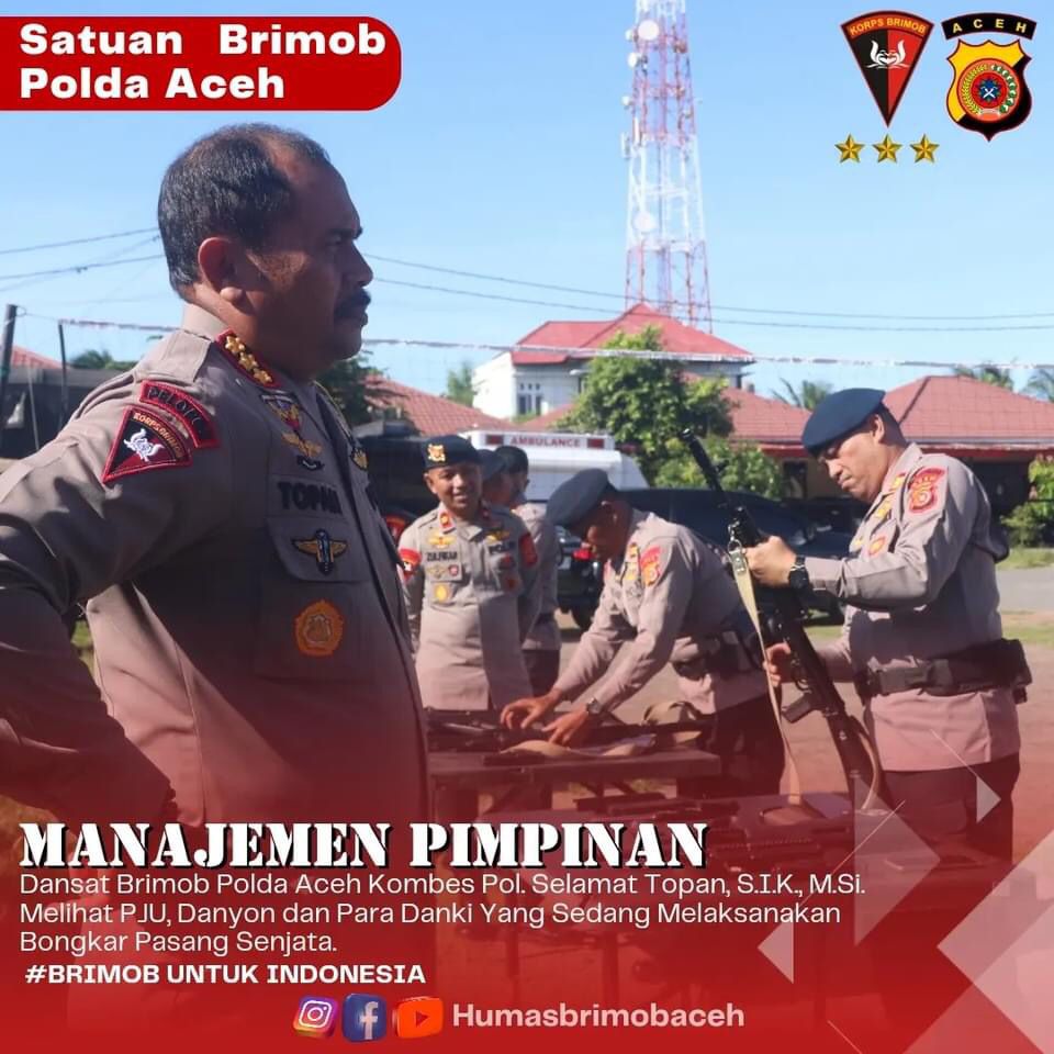 Komandan Satuan Brimob Polda Aceh, Kombes Pol. Selamat Topan, S.I.K., M.Si., didampingi oleh Wadansat Brimob Polda Aceh, memantau secara langsung kegiatan bongkar pasang senjata yang dilakukan oleh para Perwira Jajaran Utama (PJU), Komandan Batalyon (Danyon), dan Komandan Kompi (Danki) di Mako Satbrimob Polda Aceh.