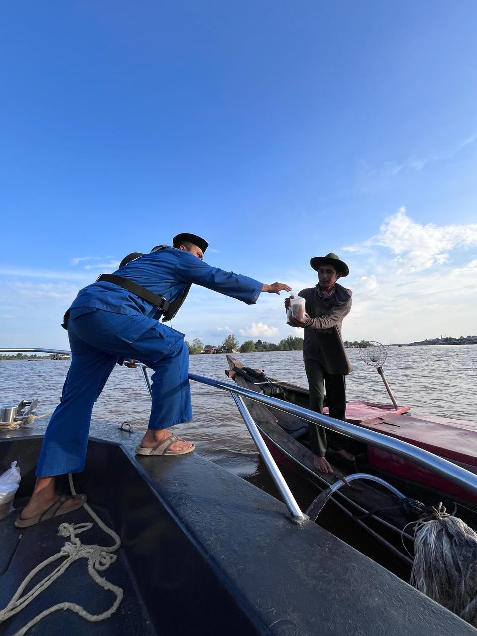 Anggota Polairud Jambi Bagikan puluhan Takjil buka puasa kepada Nelayan di Perairan Nipah Panjang (24/03/24) .