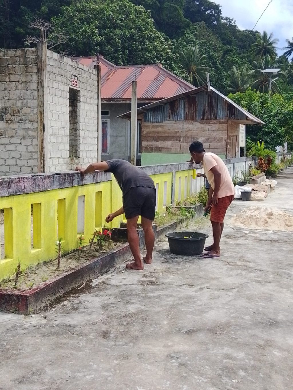 Kami sudah habis mengecat pagar di sepanjang jalan didalam kampung dan pemasangan lampu pada sepanjang jalan raya dan pantai akunya.