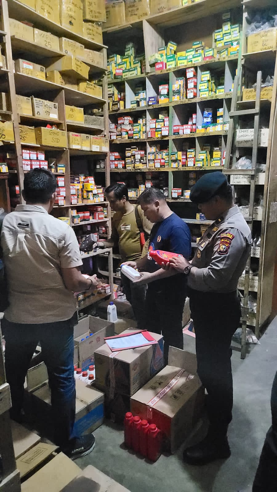 “Pengecekan dilakukan terhadap sejumlah sparepart dan oli pelumas, termasuk ban sepeda motor. Setiap barang diperiksa secara detail menggunakan aplikasi QR dan Barcode oleh tim personel Unit Reskrim Polsek,
