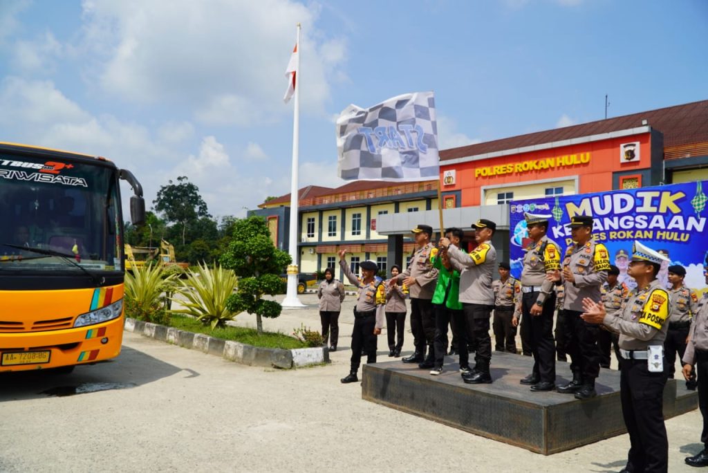 Kapolres Rokan Hulu (Rohul) AKBP Budi Setiyono SIK MH memimpin kegiatan pelepasan Mudik Kebangsaan Polres Rohul tahun 1445 H / 2024 M, Sabtu 6 April 2024 sekitar pukul 10.00 Wib di Mapolres Rohul Jalan Lingkar KM 4 Pasir Pengaraian.