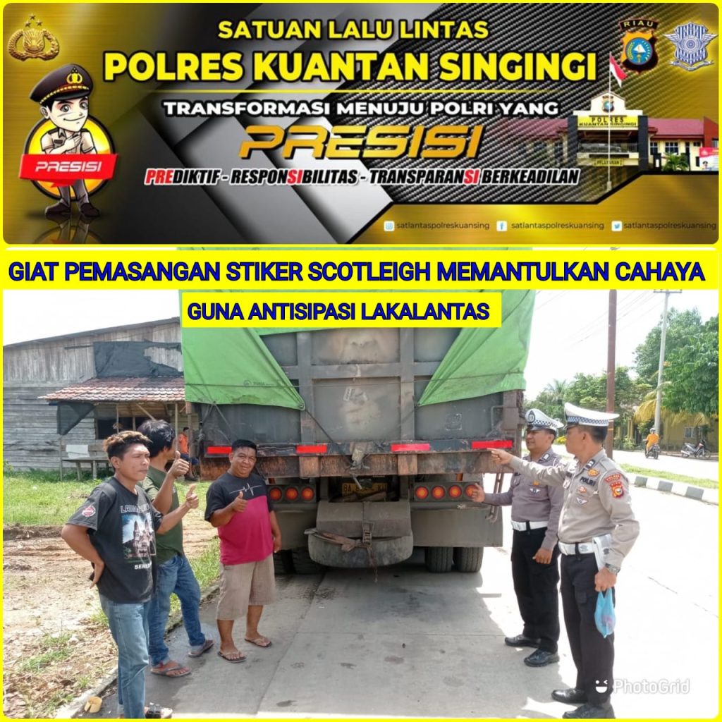 Kapolres Kuansing, AKBP Pangucap Priyo Soegito, S.I.K, M.H., melalui Kasat Lantas AKP Boy Setiawan S.AP., M.SI, mengatakan, “Dalam upaya mencegah kecelakaan dan meminimalisir korban, Sat Lantas Polres Kuansing melakukan pengecekan serta penambahan sticker Scotlight pada kendaraan angkutan barang. Langkah ini diharapkan dapat memperjelas keberadaan kendaraan di malam hari bagi pengguna jalan lainnya,” jelas AKP Boy.