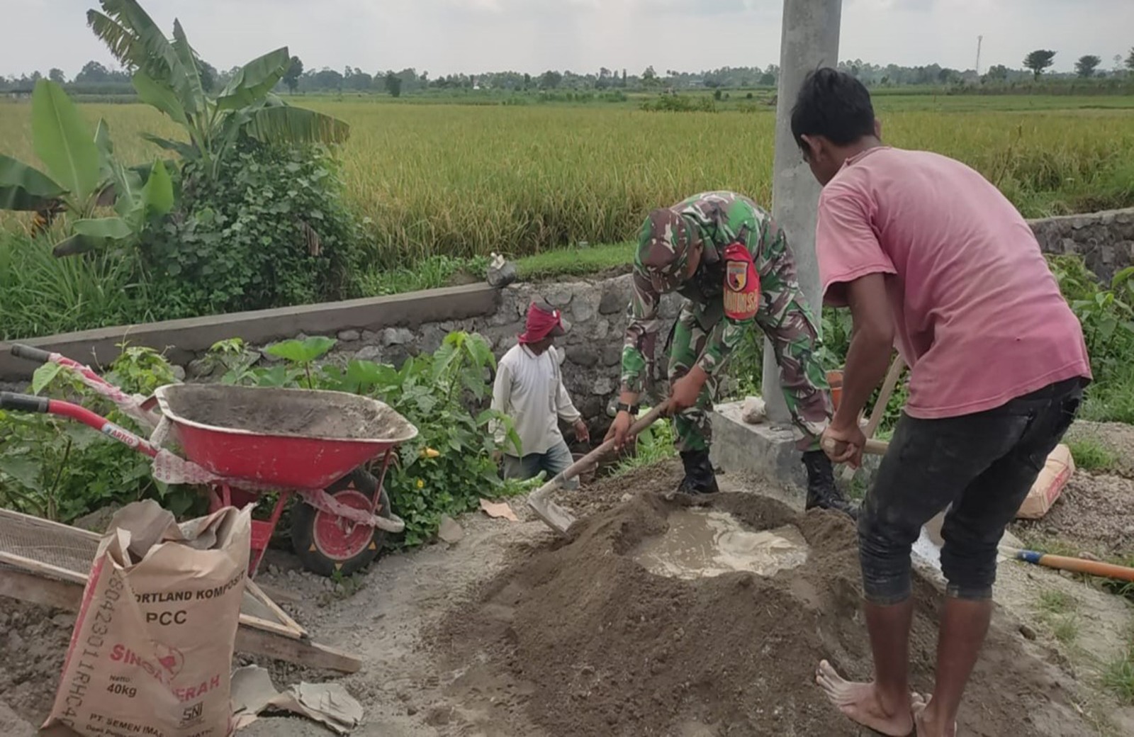 Serda Didit Arfiyanto Babinsa Koramil 0808/22 Wonodadi, aktif turun ke lapangan untuk mendukung ketahanan pangan dan meningkatkan produksi pertanian di wilayah binaannya. Bersama warga setempat, pagi ini mereka melaksanakan kegiatan gotong-royong kerja bakti pembangunan parit saluran irigasi di persawahan, yang bertempat di Dusun Centong Desa Salam Kec. Wonodadi Kab. Blitar, Selasa (10/9/2024).