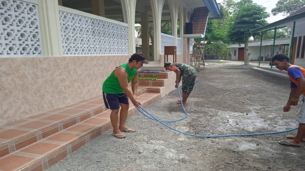 Serda Tukiran Babinsa Koramil 0808/02 Garum, memperlihatkan kepeduliannya terhadap kebersihan dan keindahan lingkungan terutama tempat ibadah, seperti pagi ini ia menggerakkan warganya untuk membersihkan