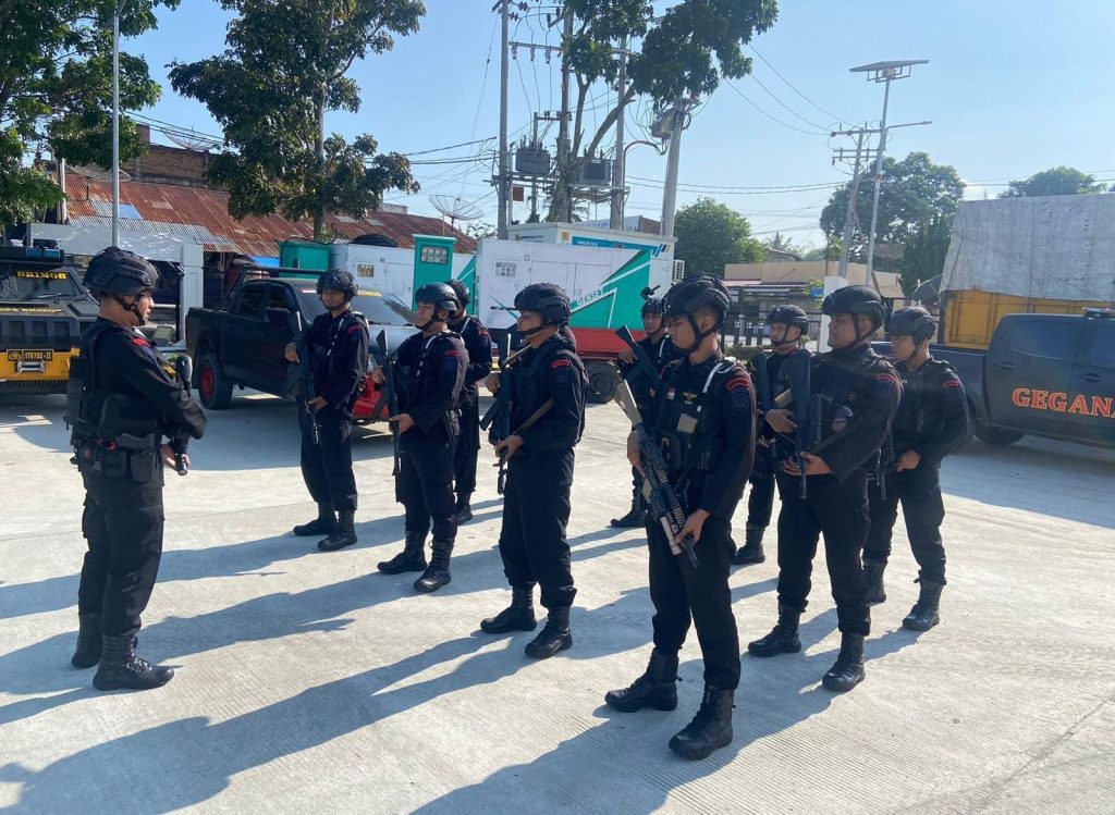 Tim Subden Wanteror Detasemen Gegana Sat Brimob Polda Sumut melaksanakan Pengamanan dan Pengawalan terhadap container yang berisikan kelengkapan Event Internasional F1 Powerboat Tahun 2024, dari Terminal Peti Kemas Pelabuhan Belawan menuju ke Kota Balige, Sabtu (24/02/24) malam sekira pukul 19.00 Wib.